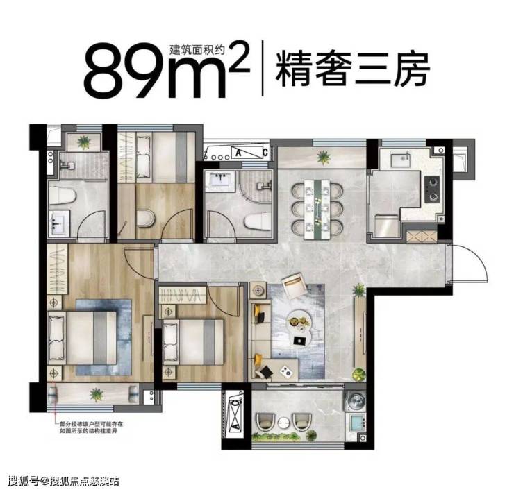 高层89㎡3房2卫近期特价280万-290万,首付最低88万。