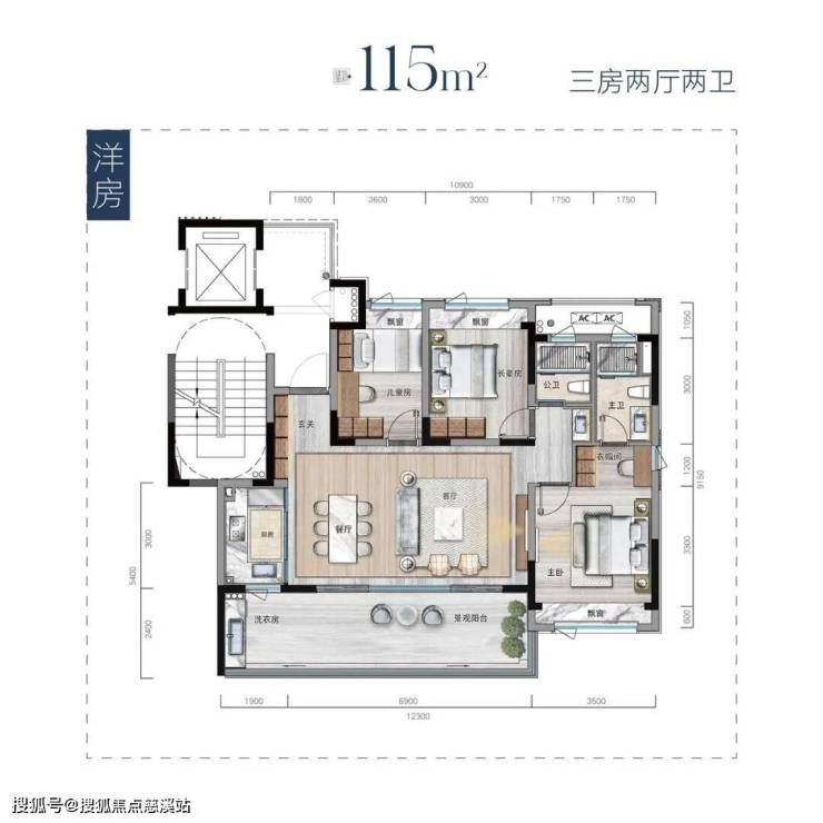 小高层115平三房两卫