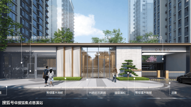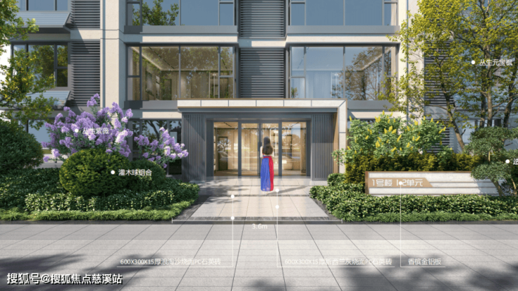 五重礼序·私属入户:单元门前香槟金景墙配常绿花境,细节叩启私域。