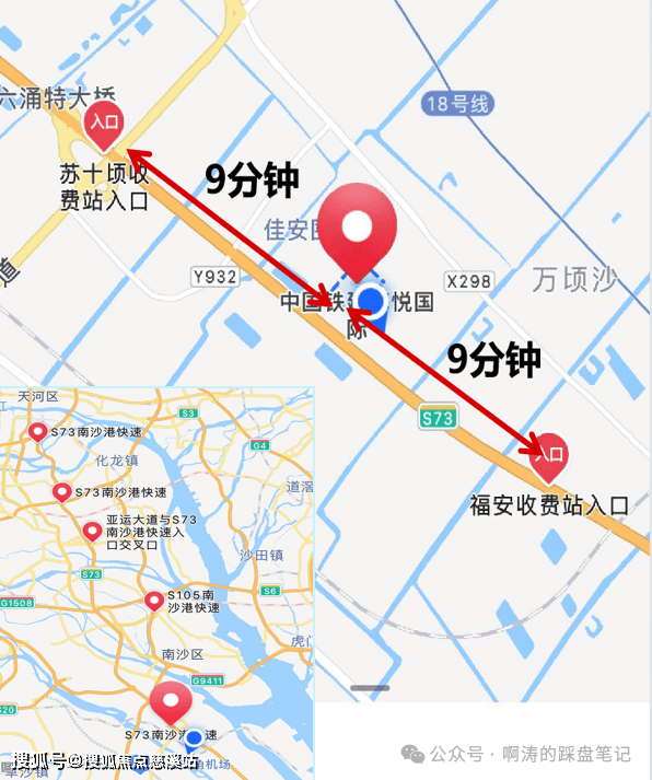 1、项目距离南沙枢纽(万顷沙站)约2公里,构筑15-30-60分钟湾区生活圈