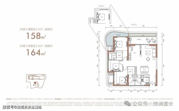 2栋20层层高约3.55m的江景大平层;