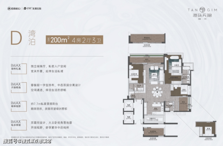 多样化的产品布局和户型设计 海珠天珺项目提供多种户型选择,包括朝向主导的轻奢产品、景观主导的豪宅产品以及奢华大平层户型,满足不同家庭结构和需求。产品在设计上强调空间的可变性和灵活性,适应二孩家庭或三代同堂家庭的多种功能需求,为业主提供个性化的居住选择。