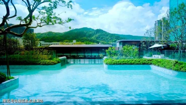 约95㎡悬挑户外景观池,采用无边际透明景观池设计,将池水与远处将军山天际线相连,形成“水天相接”的视觉奇观,远望山景,亦可270°俯瞰立体园林。