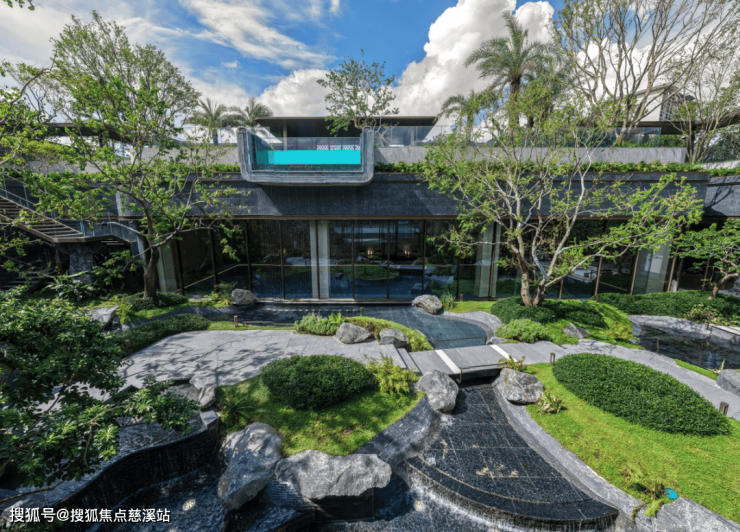 度假感下沉庭院,汲取东方园林山水造诣,因地制宜打造叠水叠石,形成特色森系庭院,漫步其间宛如森居度假。