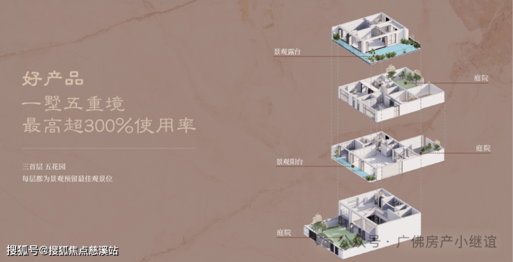 五花园:前庭后院,首创「五花园」式的设计满足长辈种花种菜的小爱好和儿孙玩闹的空间