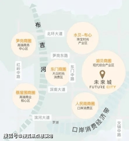 商业配套方面,华润置地未来城计划打造成一个包含购物中心、总部办公、会议展览、五星级酒店等多种功能的超大型综合性商业中心。约49万㎡的商业体量,助推湖贝-东门市级商圈的选代焕新,融汇“深圳万象城、笋岗中心万象食家、城建梅园万象汇(在建中)”等磅礴商业这样的商业配套。不仅能够满足居民的日常购物、娱乐需求,还能吸引大量的商务人士,提升整个区域的商业活力和居住品质。