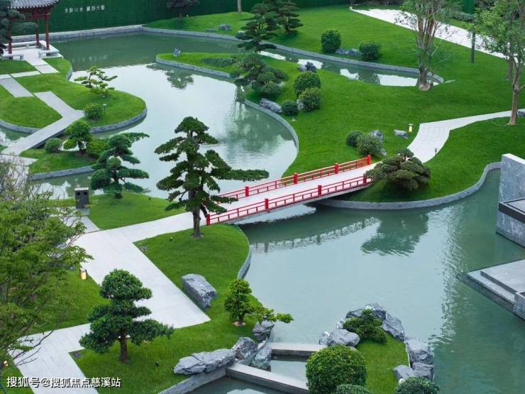 为了增强园林的灵动生命力,还打造有约4900平水系,将黄旗山景和内部园林互相辉映。