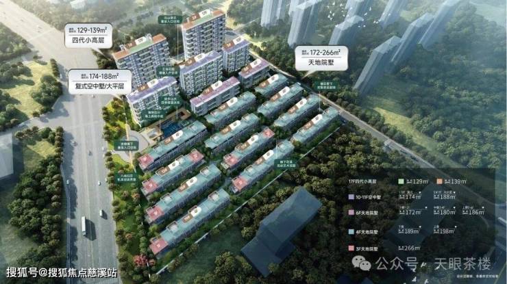 国贸樾云墅容积率仅1.5,建面约129-266平的4.0低密传世四代墅,分四代小高层(17F)、复式空中墅/大平层(10-11F)、天地院墅(3-6F)等产品形态,不再有高层,也没有小户型,通透采光,圈层纯粹。