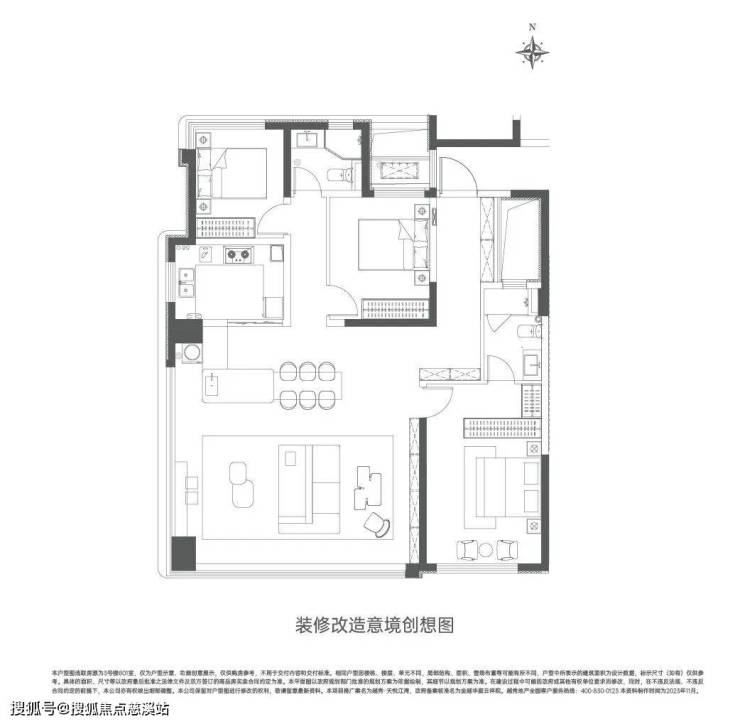 开间约7.4米,进深约7.2米,全景餐客厅,打造多变大空间超大弹性空间。