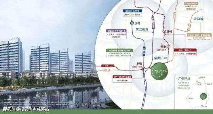 项目距离地铁18号线龙潭站1.2公里,并临近在建的11号线,双线交汇,通勤珠江新城、琶洲仅需30分钟。
