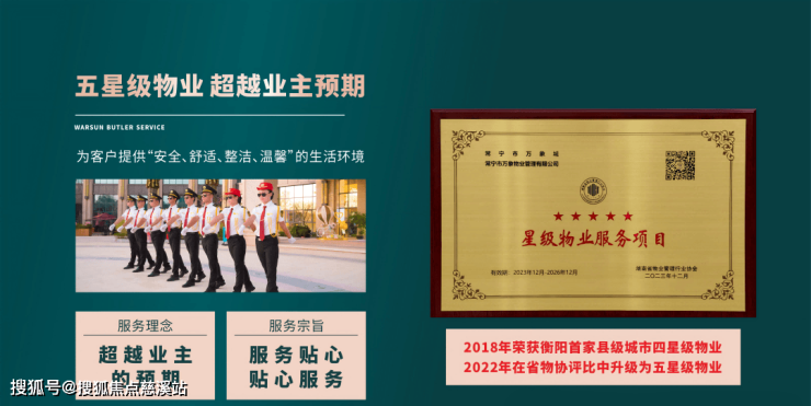 万象·恒基物业秉承“服务贴心、贴心服务”的服务宗旨和“超越业主预期”的核心服务理念,为客户提供“安全、舒适、整洁、温馨”的生活环境。多年来业主满意度调查评分均在90分以上,细致服务,有口皆碑。2022年在省物协的评比中升级为五星级物业!