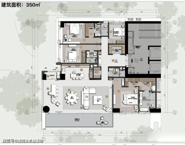 项目一期户型面积涵盖建面约163/175㎡、253/283㎡、350㎡全景抱山大平层。