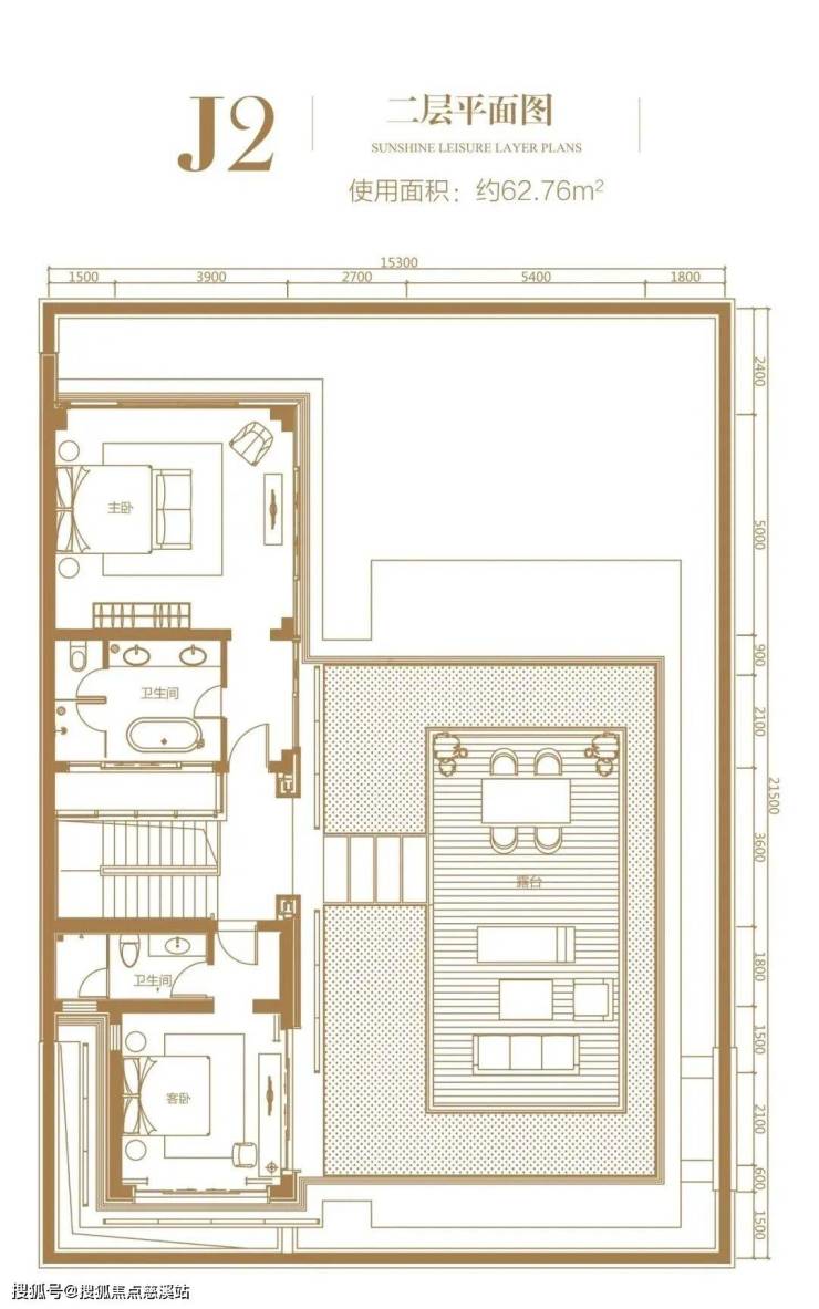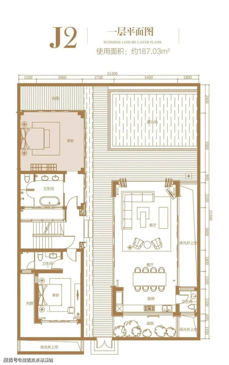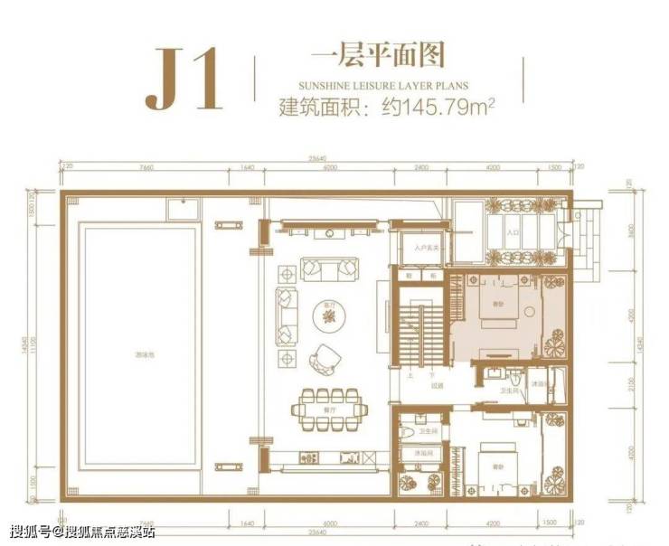 J1户型:四室三厅四卫(100平米院子、500平米院子)毛坯交付