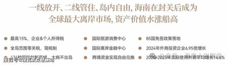 约22公里三亚旅奢海岸,是海南自贸港唯一"国"字头开发的休闲度假湾区,以顶层蓝图设计,6000亿顶奢配套矩阵,成就湾区塔尖生活及资产高度。