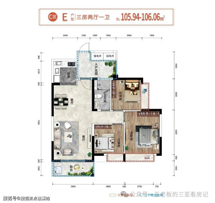 🔹奢阔卧室,均带宽景飘窗,私享雅致人生 E户型亮点