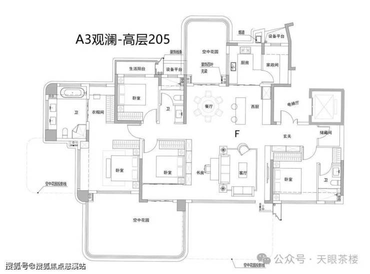 约143平洋房四代宅,带270度转角独立入户明厅,全明格局;奢阔主卧,270度瞰景,带超大空中花园,墅级享受;厦门首个143平4房3卫双套卧户型,引领厦门迭代新风尚;西边南向次卧,既可以和空中花园连通,也可以通过连廊和客厅连通,厦门首次出现这种布局....