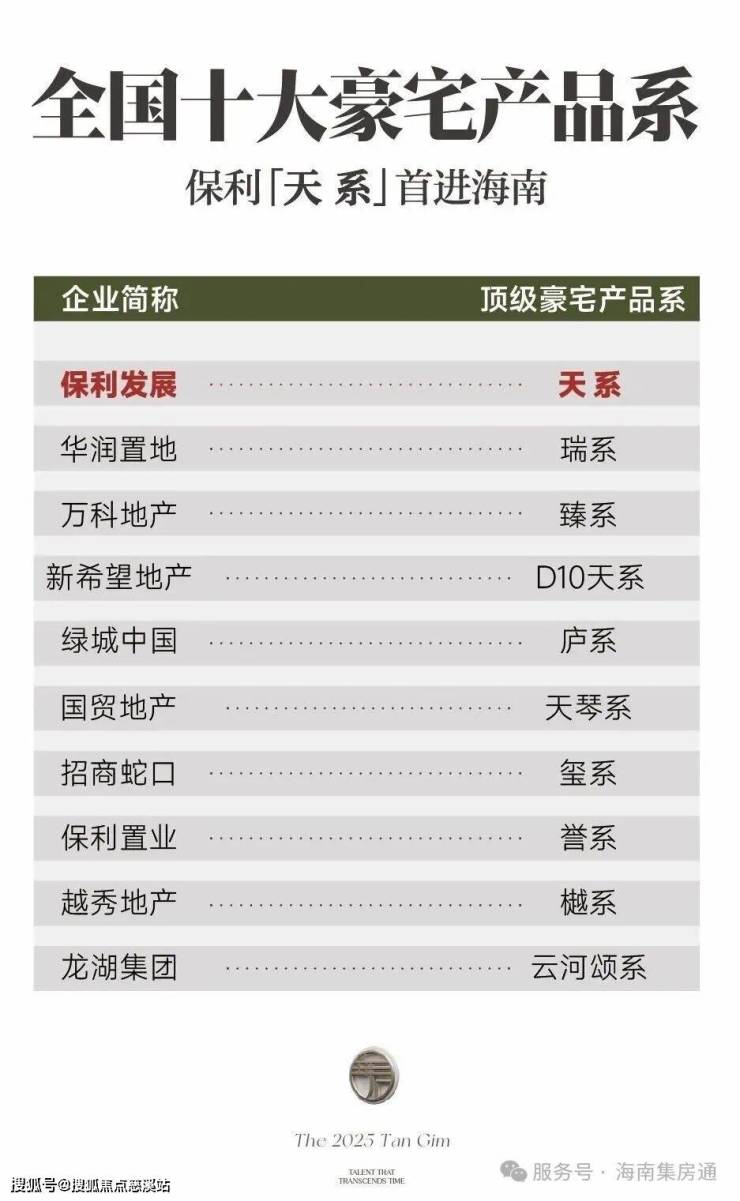 天系,以客户需求为圆心,根据城市基座,提出“甄选城芯、产品打造、服务配置”三个方面的严苛要求,因而成为保利顶级豪宅产品系。且是全国十大豪宅产品系中首位进入海南的。