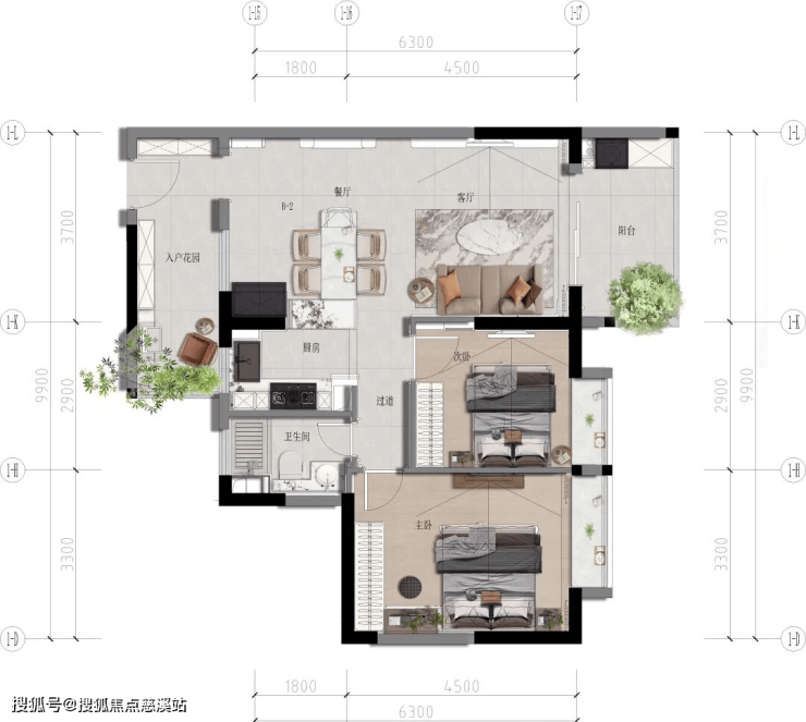 ◎宜居范本:独立入户花园,方正两房筑就宜居典范