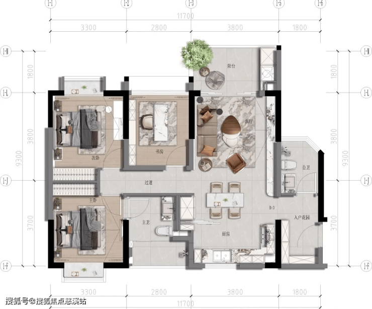 【B3 奢阔大平层 建面约89㎡ 三室两厅两卫】