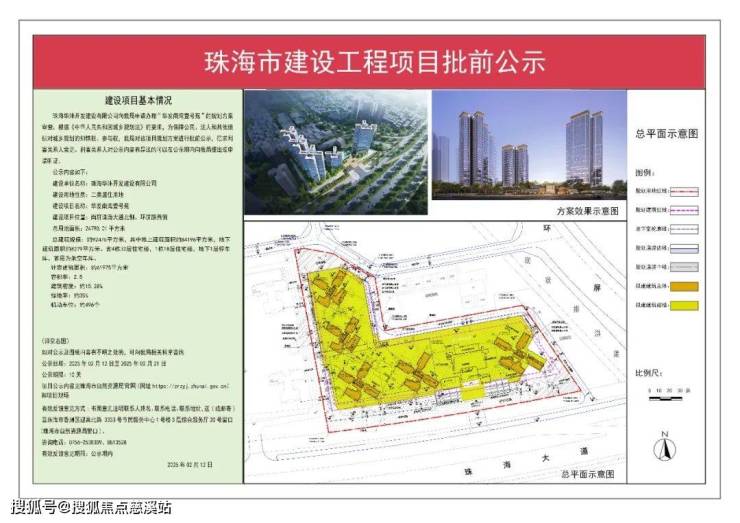 位于香洲区南屏珠海大道北侧、环屏路西侧。项目总用地面积约24790.01m²,总建筑规模约92475㎡,容积率2.5,绿地率约35%,含约496个机动停车位。规划建设4栋32层住宅楼,1栋18层住宅楼,地下一层停车库,首层为架空车库。楼栋呈半围合式布局,基本是户户无遮挡。景观核心有下沉庭院、室外泳池等设计。从效果图可见,项目外立面呈现出现代简约的设计风格,体现出都市化的高端居住氛围。从材质上看,大量使用玻璃材质,使得建筑外立面具有通透感,能增强室内采光效果。同时,能看出采用了大面积开窗面设计,无疑是高端产品的设计。