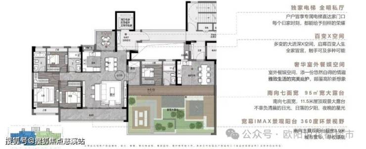 建面约170㎡ 四房三厅三卫+X空间+大露台