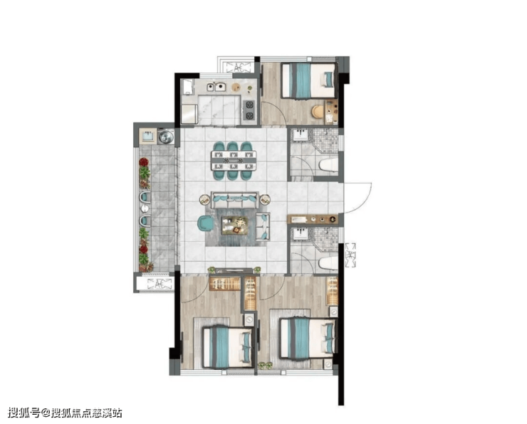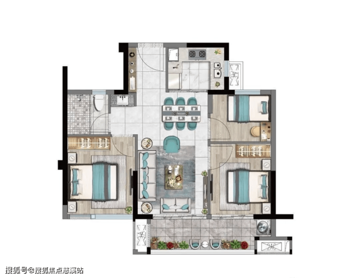 79㎡:三房两厅一卫一厨