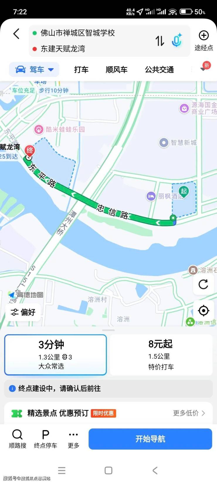 现在走过去佛山地铁2号线智慧新城A出口约1.1km16分钟左右,需要等北侧厂房开条小路走过去才会近一些