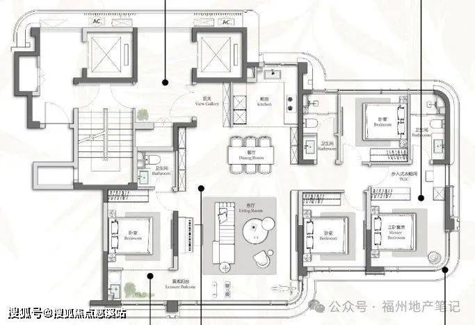 类四叶草户型虽节省过道面积但导致餐厅在户型中心,交叉动线。