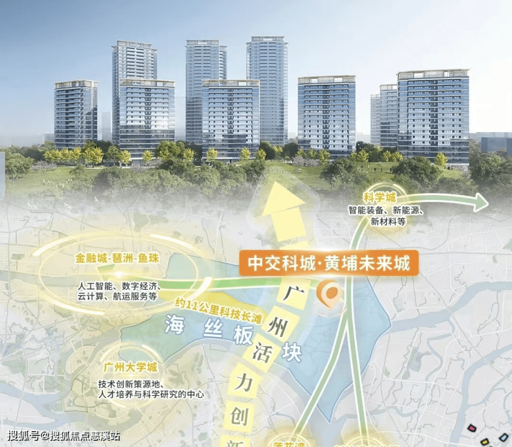 中交科城·黄埔未来城处于海丝城创新走廊的核芯位置,坐落于将军山数创园内,目前将军山数创园(一期)项目,已被列入了2025年广州重点项目,决定了项目不单纯依靠“外溢买家”输血,而是以产城融合的形式出现。