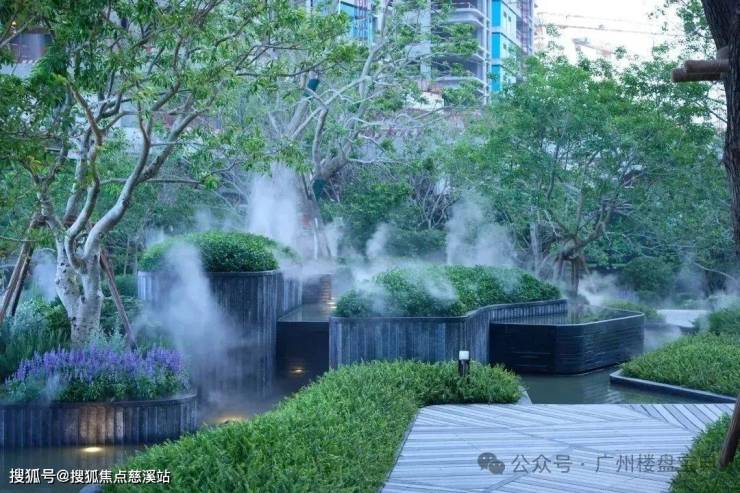 保利珠江天悦整体的园林设计,对标世界设计酒店安缦酒店,在社区中带来酒店的松池感。