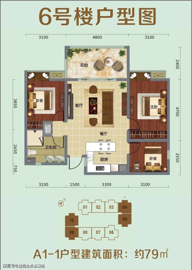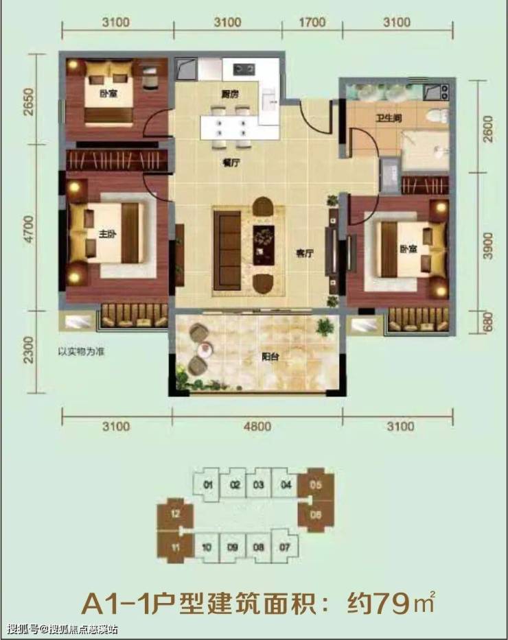 ⭐A1-1户型建筑面积:约79㎡