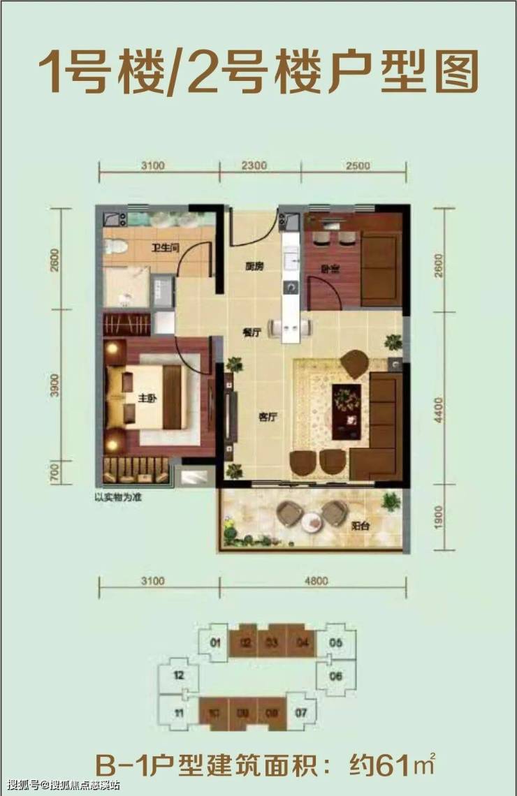 ⭐B-1户型建筑面积:约61㎡