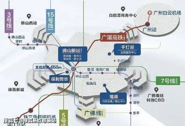 高铁(佛山新站):约10分钟无缝对接广州站,30分钟直达白云机场,约1个半小时通达港澳, 90分钟达湛江。