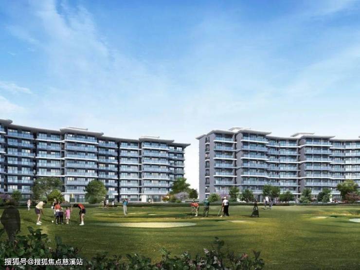 君悦公馆,在造型上采用现代屋顶、玻璃阳台等,较为灵动的现代建筑风格来呼应高尔夫形态,在色彩上,采用冷蓝灰搭配米白来与自然景观相互融合,带给居者时尚观感的同时,又能与景观形成视觉对比,丰富视觉层次,体现洋房品质。