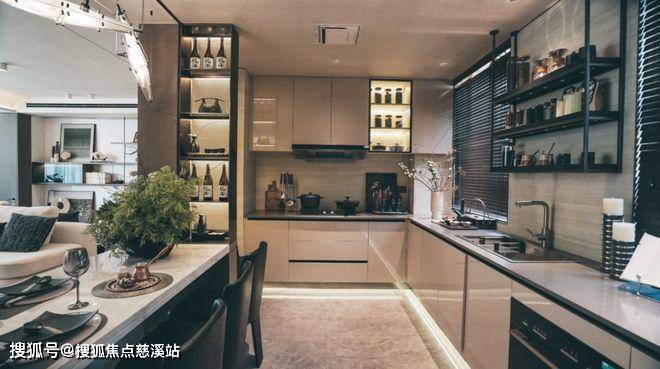 U式厨房布局,精心考究既保证空间的宽敞,又凸显格局规整体贴的人性化,设计彰显科学厨房空间与人本细节理念,无缝衔接“取、洗、切、炒”等,操作步骤一气呵成,另外宽大的窗户在保证通风效果及透光性的同时,还能随心领略窗外的自然风光。