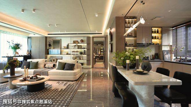 餐厅与客厅一体化设计,大大增加了空间的通透性、可视性、互动性,拓展了活动空间,极大方便一家人的日常起居,以客厅为中心,完美地将家庭成员聚集在一起,无形中创造了更多的家人陪伴和互动的机会。