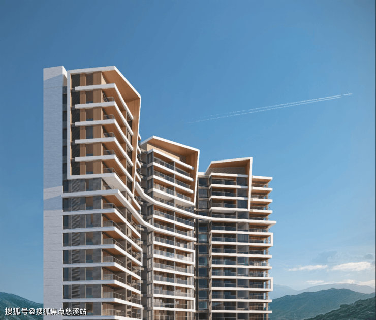 ·友好开放的建筑界面:从山海汲取松弛灵感,打造友好开放的建筑界面。以波浪为设计灵感,通过错落阳台形成横向外展线条,赋予建筑如海浪层层推开的漂浮松弛感。立面采用深浅质感涂料与铝合金格栅,融入木纹肌理,以清爽色调与温暖木色诠释极简美学,兼具时代感与自然氛围。