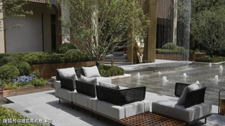 亲水平台之上,摆放着一组户外沙发,将度假的松弛感拉满。