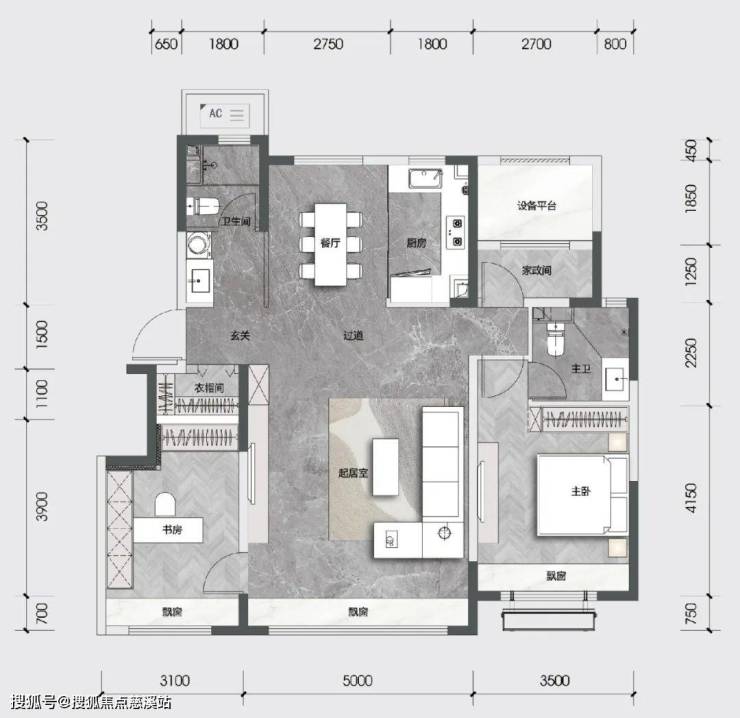 不同于市面上很多户型的大面宽短进深,看上去很炫酷,其实并不实用。