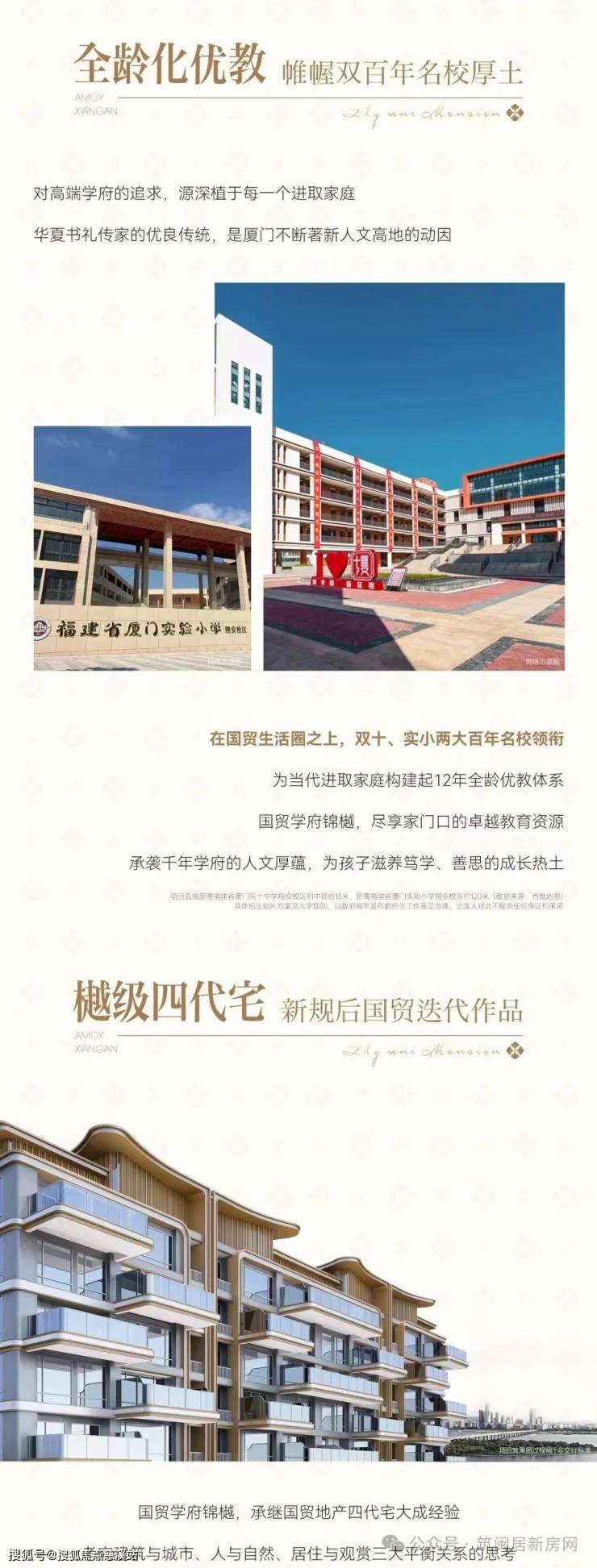 国贸学府锦樾共8栋翔安首个层高3+樾级学府住区,普宅层高3米,第四代洋房层高3.15米。3栋高层、3栋纯四代洋房住宅、2栋洋房并自带一个幼儿园,相当于12年一站式上学,主推建面约86-111平学府迭代高层 | 约132-139平樾级四代宅。