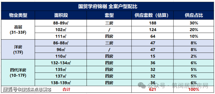 31至33层高层产品涵盖88-111平三至四房,占比60%、17层洋房产品涵盖86-110三至四房产品,占比18%、四代洋房产品涵盖132-139平四房,占比22%。