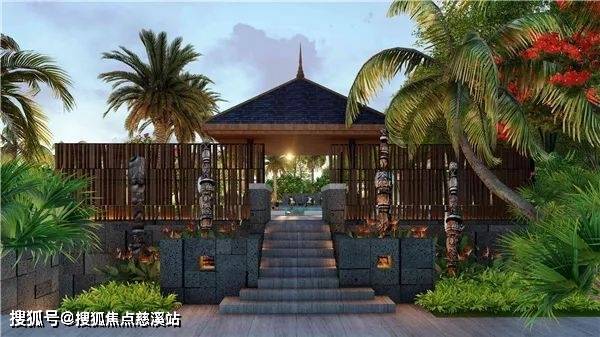 本项目意在极力突显度假氛围,将东南亚风格进行现代化的诠释,尽显优雅与大气。水面结合椰林尽显度假氛围,葱郁的热带植物渲染东南亚风情。