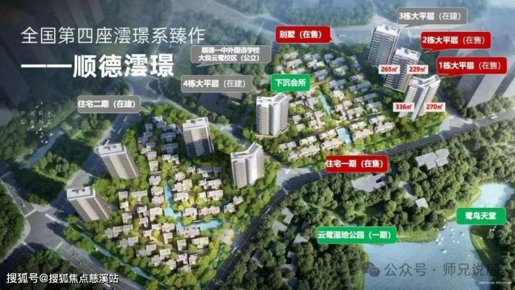 📍在售业态:集大平层(佛山首个第四代住宅)、别墅、湿地公园、公立学校于一体的公园住宅