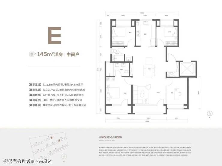 项目唯一的小高层户型,两梯两户,招商系四叶草平衡四居,格局构造和X47产品类似