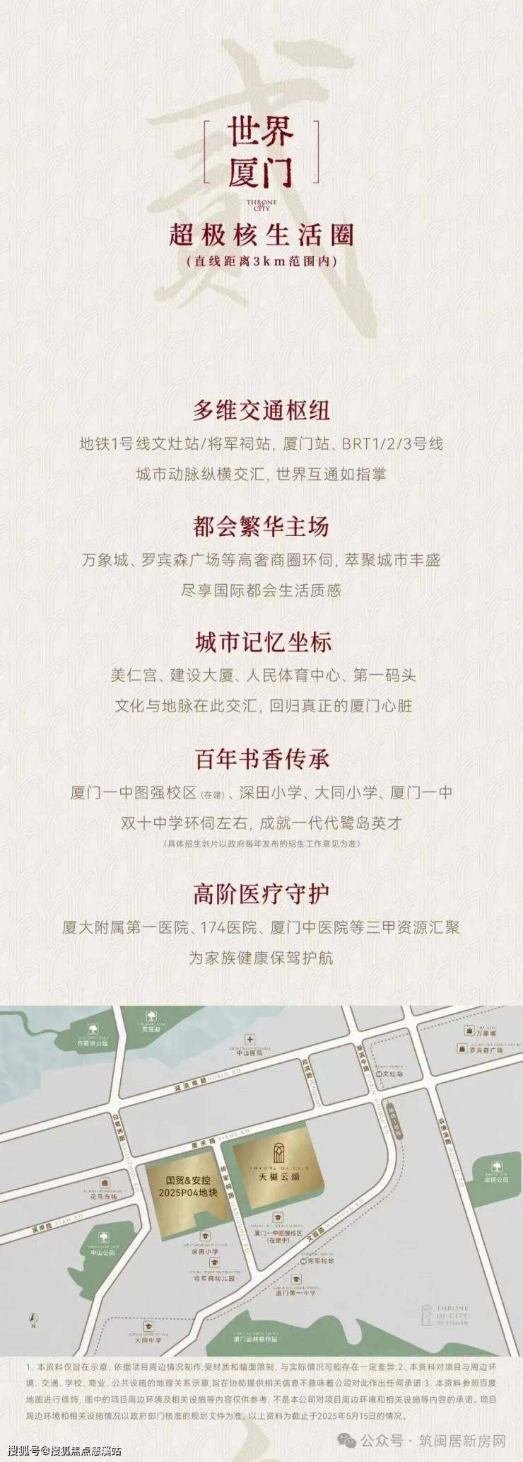 作为厦门初代富人区,将军祠板块历经十年断供,天樾云颂以楼面价5.1万/㎡强势回归。项目位于厦禾路与将军祠路交汇处,步行429米直达地铁1号线将军祠站,5分钟直达中山路、SM城市广场,10分钟连通滨北CBD,真正实现"老城区的烟火气+新中心的便捷度"。