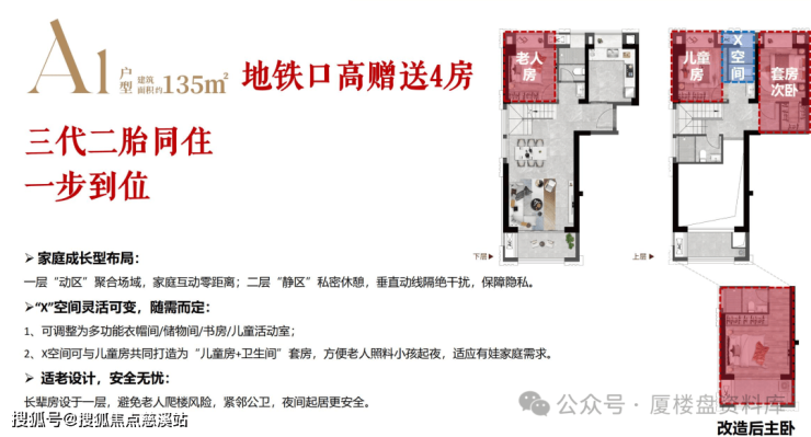 【产品面积】建面约86-135㎡复式“2+1”房、4房