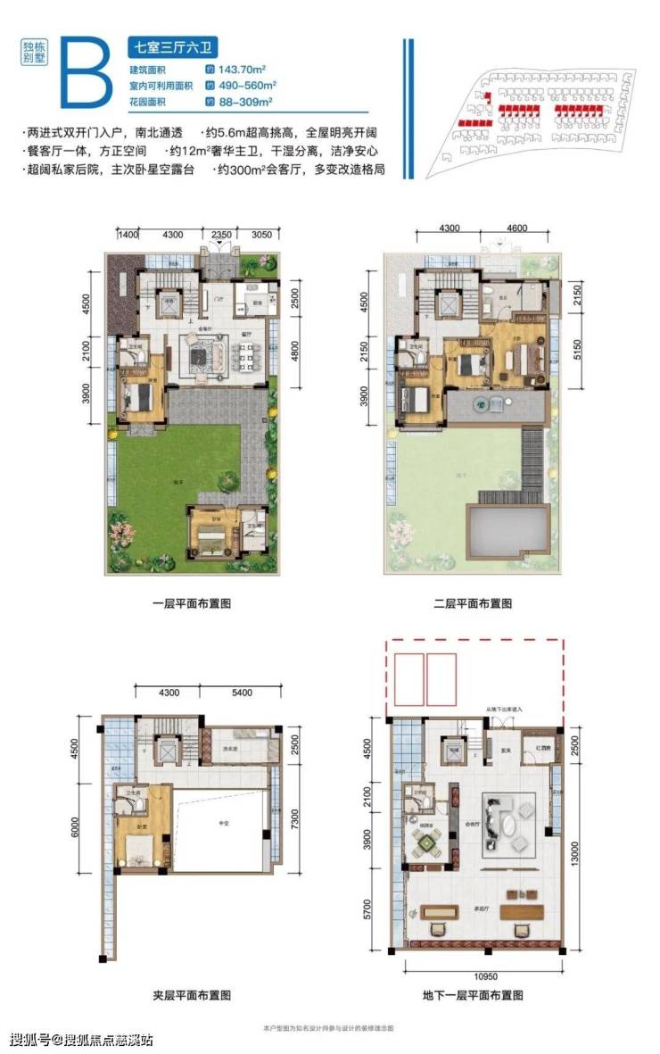 平墅:约115—168㎡ 3.9米层高现房平墅,南北双露台