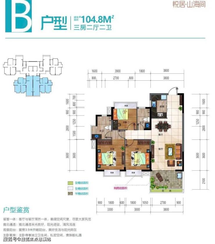 户型面积:101~106三房两厅两卫/两房两厅一卫