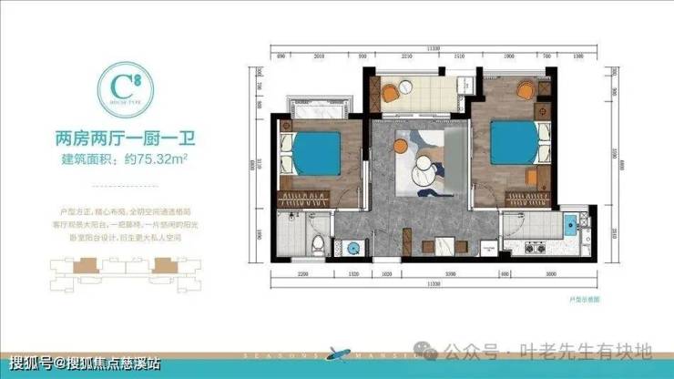 两栋8层现代简约风格建筑,高楼层户型可看海。