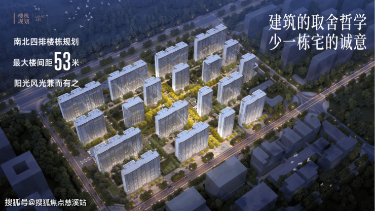 项目南北四排楼栋规划,最大楼间距约53米,阳光风光兼而有之。在建筑的取舍哲学中,敬献生活的诚意。